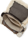 ふわふわのエコファーとスエード調素材を組み合わせた、季節感たっぷりなミニバッグ。アクセントにベルトディテールをあしらい、甘すぎない印象に仕上げた。