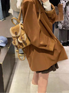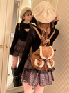 モコモコのボアとスエード調生地を組み合わせた、季節感たっぷりのミニリュック。コロンとした丸みのあるフォルムが、女性らしさを漂わせるポイント。