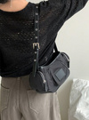 両サイドにファスナーポケットをあしらったユニークな形のバッグ。上品さとカジュアル感がミックスして、韓国っぽコーデが即完成。