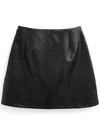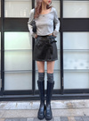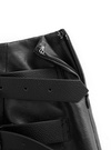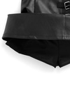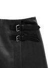肌馴染みの良いフェイクレザーでシャープに仕上げたミニスカート。サイドのダブルベルトが着こなしにアクセントをプラス。