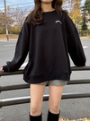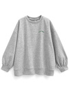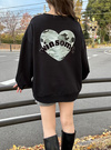 柔らかなスウェット生地が快適な着用感を提供するトップス。背面には迷彩柄のハートモチーフと立体感のあるサガラ刺繍ロゴが施され、遊び心あふれるデザインに。