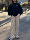 ドロップショルダーとゆったりとしたフォルムがリラクシングなムードを生み出す。