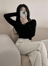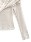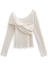 リブニットが心地よくフィットし、女性らしいシルエットを強調。クロスドレープデザインが立体感を生み、ベーシックながらも華やかな印象に。