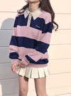 ボーイフレンドライクなラガーシャツをニットで仕上げることで柔らかな女性らしさをプラス。太めのボーダー柄がカジュアルでありながら、洗練されたニュアンスを演出。