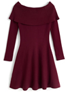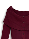 折り返しリブが顔まわりを華やかに見せる、上品なオフショルデザイン。体に沿うシルエットで、女性らしいボディラインを演出。