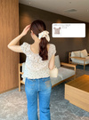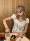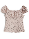 フラワープリントをあしらい、レトロガーリーなムードをまとうトップス。ネックラインや裾にあしらわれたフリルが、柔らかなワンポイントに。