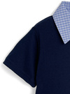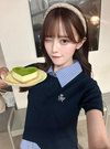爽やかなチェックシャツにリブトップスを組み合わせたようなレイヤード風デザイン。襟付きがマニッシュな印象を与えつつ、コンパクトなサイズ感で女性らしい着こなしに。