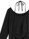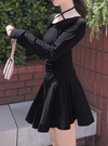 デコルテをきれいに引き立てるホルターネック仕様のミニワンピース。肩周りはゆるやかなラインを描くラグランスリーブで、程よい抜け感をプラス。