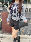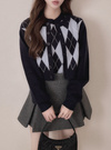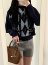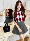 アーガイル柄ニットカーディガン×ノースリーブトップスアンサンブルの商品詳細情報のページです。