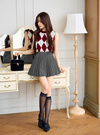 柔らかなニット素材で仕立て、快適に着られるアンサンブル。クラシカルなアーガイル柄がスタイリングにトラッドなムードをメイク。