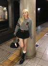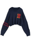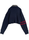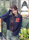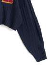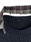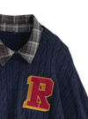 立体感のあるケーブル編みにカレッジテイストのワッペンが目を惹くトップス。きちんと感を出せるチェック柄の襟は、ボタンで簡単に取り外せる仕様。