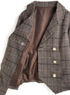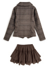 クラシカルなチェック柄のジャケットとミニスカートがセットになったアイテム。短めの丈感とコンパクトなシルエットで、スタイルをすっきりと見せるジャケット。