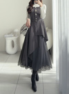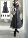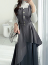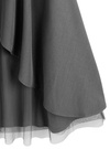 異素材を組み合わせたドッキングデザインが印象的なワンピース。アシンメトリーなカッティングから覗くチュールスカートが、上品で優雅な印象を添える。