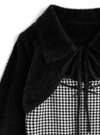 ふんわりとしたシャギーボレロとチェック柄キャミソールのアンサンブル。襟付きデザインで大人な甘さのボレロは、柔らかな風合いで着心地も◎。