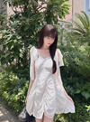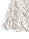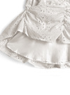フラワーモチーフのコットンレースが涼しげでスウィートな雰囲気のミニワンピ。スカート部分はギャザーを寄せることで立体感のある華やかなシルエットに。