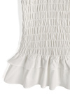 オフショルデザインとフリルディテールでフェミニンなニュアンスをプラス。