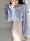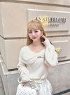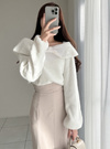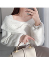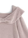大きなリボンを纏ったような襟にキュンとするニットトップス。フロントにはパールビジューを添えて、ネックレスがなくてもきらめくデザインに。