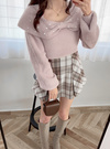 ふんわりとしたシャギーニットはフェミニンムード満点。