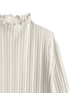 立体的な編み地で表情豊かに仕上げた女性らしいニットソー。メロウフリルデザインでガーリーな要素を含ませた一着。