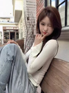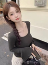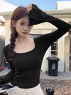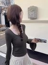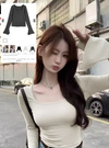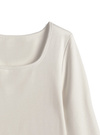 なめらかな肌ざわりのカットソーが、洗練された印象をメイク。スクエアに開いたネックラインが、デコルテをきれいに見せる。