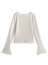 スリット入りのフレア袖が、手元にニュアンスを与えるワンポイント。