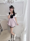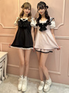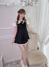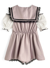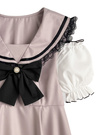 セーラーカラーと大ぶりなリボンが印象的な、ミニワンピース風セット商品。袖はバルーンシルエットで仕上げ、配色のパイピングとフリルでガーリーに。