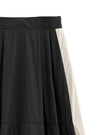 ナイロン生地のスカートでコーデにカジュアルで軽やかな雰囲気をもたらす。配色の効いたサイドラインのデザインでアクティブな印象を加える。