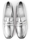 つま先はシャープなスクエアトゥを採用し、甘くなりすぎない大人の印象に仕上げたローファー。フラットに近いヒールで、コーデにラフさや抜け感がプラス。