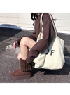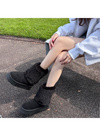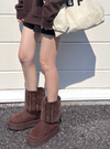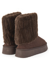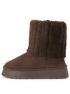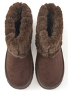 なめらかなスエード調素材のブーツにエコファーをかぶせた、シーズンムード高まるアイテム。内側までファーをたっぷりと使用しており保温性◎。