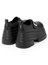 ボリューミーな厚底デザインで、脚長効果抜群の盛れるシューズ。フロントにはメタルバックルをあしらい、モードなアクセントをプラス。