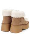 ふわふわのボアが足元を包み込む、季節感たっぷりなムートン風のショートブーツ。存在感抜群のルックスで、シンプルな着こなしにも映えるアイテム。