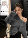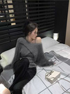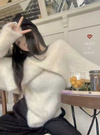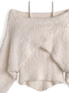 ふわふわのシャギーニットを使用した、柔らかな着心地のアンサンブル。