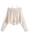 クロップド丈クロストップス×キャミソールシャギーニットアンサンブル[ab161f]