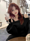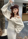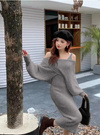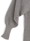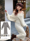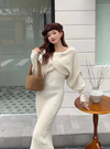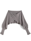 柔らかなリブニット素材で仕立てたボレロとキャミワンピースのセットアップ。折り返し風のクロスデザインが特徴のボレロは、程よいルーズ感でワンショルやオフショルにも着られる。