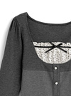 配色トップスに水玉柄のインナーをレイヤードしたようなデザイントップス。