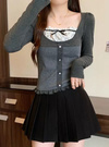 ドット柄フリルリボンレイヤード風トップスの商品詳細情報のページです。