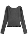 お腹周りは伸縮性のあるリブ素材で、フィット感があり細見え効果も。