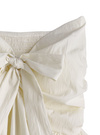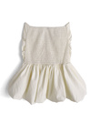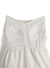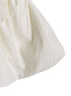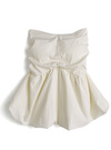 ややハリ感のあるさらさらとした生地で仕立てたベアトップ。ふんわりと広がったバルーンフォルムが女性らしさを引き立てる。