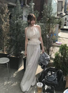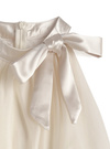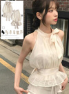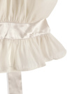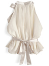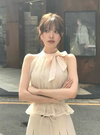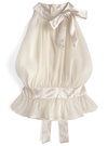 エアリーなシアー素材に光沢のあるサテンリボンがエレガントな印象のトップス。リボンはネックやバックウエストにもあしらい、どこから見ても華やかなルックス。
