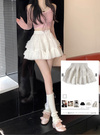 レースやオーガンジー素材を重ねたボリュームたっぷりのミニスカート。コーディネートに取り入れるだけでガーリーな着こなしが完成する。