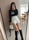 ミニスカートに見えるラップ風デザインがアクセントになったトレンド感満載のショートパンツ。シワになりにくく高級感のあるツイード生地に刻印ボタンがスタイリングを華やかに。