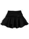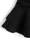 ウエストまわりのギャザーやふわっと広がる二段フリルなど、立体感にこだわったスカート。歩く度にフリルが軽やかに揺れ動き、女の子らしさたっぷりなシルエットを演出。