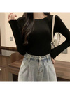 ベーシックラウンドネックリブニットトップスの商品詳細情報のページです。