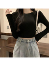 ベーシックなラウンドネックで、カジュアルからフェミニンまで幅広く着こなせる。