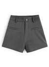 ハリのあるさらっとした生地でロングシーズン着回せるショートパンツ。スタイルアップ効果のあるハイウエスト仕様がお気に入りポイント。