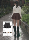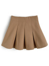 ボックスプリーツをあしらい、ガーリーな表情に仕立てたミニスカート。フェイクウールのしっかりとした素材は型崩れしにくく、きれいな広がりをキープ。