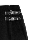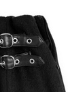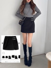 程よい厚みのウールライクな生地で仕立てた、季節感たっぷりのミニスカート。ダブルベルトやさり気ないスリットをあしらったラップ風デザイン。