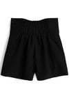 ハリのあるさらさらとした生地で、オールシーズン着回せるショートパンツ。スタイルアップ効果が期待できるハイウエストデザインがお気に入り。