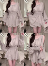 オープンショルダーチュニック×ショートパンツセットアップ[al268]