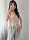 ボヘミアンな雰囲気漂うクロシェニットビスチェ。フラワーのようなモチーフや幾何学模様を組み合わせたエキゾチックな編み柄。